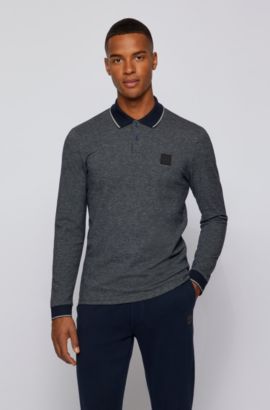 Men S Long Sleeved Polo Shirts Blue Hugo Boss